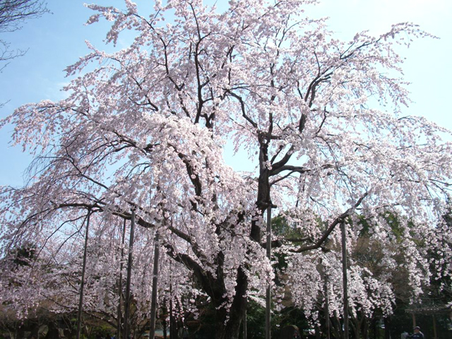 自宅から徒歩20分ぐらいの公園にある立派なしだれ桜。